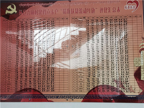 为彻底打破脱贫攻坚工作“一头热一头冷”的局面,不断激发出群众的主人翁精神,哈尔盖镇环仓秀麻村按照“通过转变观念智力扶持脱贫一批”的要求,首创了“精准扶贫流动红旗评比制度”。