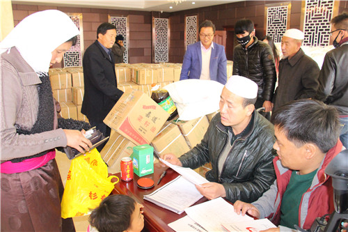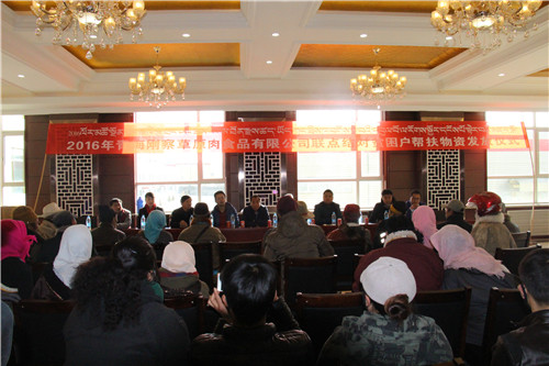 2016年青海刚察草原肉食品有限公司联点结对贫困户帮扶物资发放仪式现场