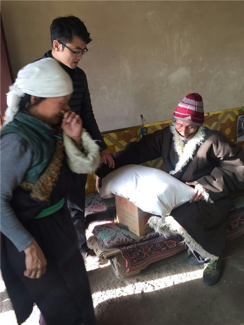 在果洛藏贡麻村慰问贫困户,并送去了慰问品。