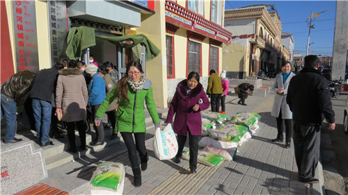 在新春佳节来临之际,为了体现党和政府对贫困居民的关怀,为确保辖区内贫困居民过一个欢乐、祥和、平安的春节,沙柳河镇城南社区对辖区内贫困户进行慰问,此次慰问对象主要是五保户、残疾人、孤儿等困难家庭。为每户发放了一袋大米和一袋面粉,共慰问75户人家,将真挚的祝福和深情的暖意带进贫困家庭。