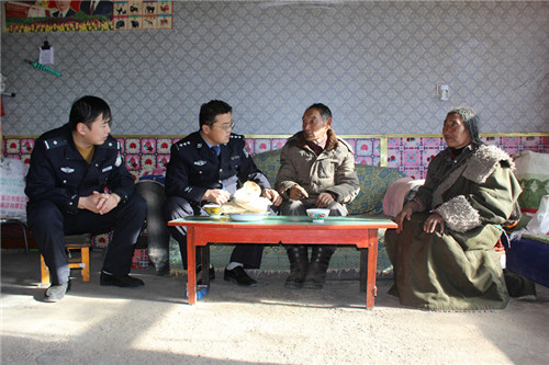 为扎实开展精准扶贫工作,深入推进全县同步小康进程,青海湖派出所认真领会精准扶贫精神,切实做好各项扶贫工作,帮助贫困户解决生产生活中的困难和问题,让他们树立生活的信心。1月14日上午,青海湖派出所所长带领民警深入沙柳河镇果洛村开展精准扶贫对口帮扶活动,先后来到沙柳河镇果洛村的精准帮扶对象家中,与他们握手交谈,嘘寒问暖,并向他们送上节前的慰问金及慰问品。详细了解他们的生产生活和身体健康状况、家庭收入来源、存在的实际困难、致富的想法和打算等。面对面的与他们拉家常,鼓励他们再接再厉,发扬自力更生、勤劳致富精神,为其他贫困户带好头、做榜样,争取早日脱贫致富。