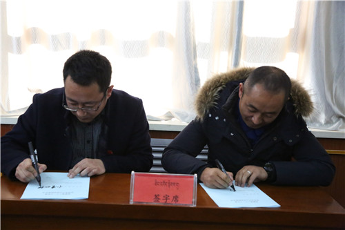 县安委会副主任、副县长仁青加措与各乡镇乡镇长签订安全生产目标管理责任书。