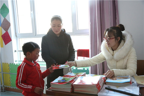 教师给学生发放教材