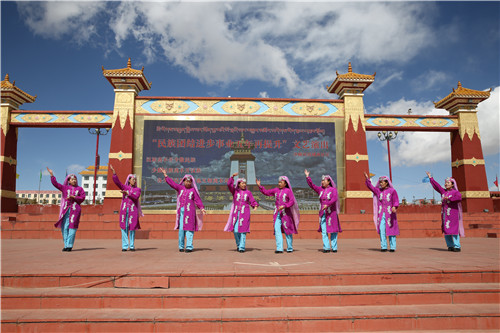 此次汇演在文化广场隆重举行,县委常委、沙柳河镇党委书记文选,县人大常委会副主任卢宝孝,县政协副主席杜东,县委宣传部副部长、县新闻中心主任贡宝东智等领导以及百余名群众观看了演出。