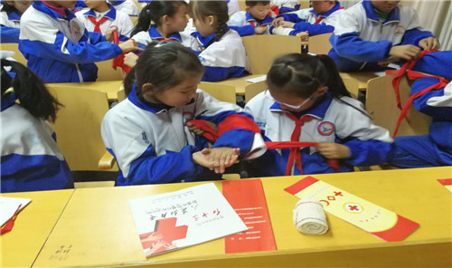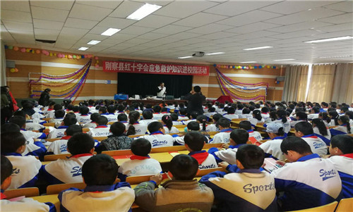 近日,县红十字会工作人员走进县寄宿制完全小学开展了应急救护知识进校园活动,该校四、五年级的300多名师生参加了培训。
