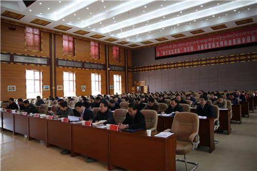4月10日,刚察县召开县委理论学习中心组(扩大)学习会议,邀请州委党校高级讲师马生忠同志对全县副科级以上干部及县委统战部全体干部职工进行了民族团结进步事业五年再提升工作专题辅导,讲座由县委常委、宣传部长、县总工会主席祁梅主持。