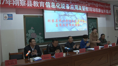4月7日上午,刚察县中小学现代教育技术设备应用及管理现场交流会在县民族初级中学拉开了帷幕。来自全县6所学校的校长、教务主任、电教老师、教育局各科室成员等56名同志参加了会议。莅临此次现场会的领导有县人大常委会副主任卢宝孝、县政府副县长哈文秀、县政府教育督学周毛。会议由县教育局专职副书记逯科章主持,教育局党委书记、局长李秀作了题为“强化设备管理,深化学科整合,全面推动刚察教育内涵发展”的专题报告以及工作安排,他从全县信息技术教育现阶段存在的问题和今后一段时期的工作重点作了详细的安排。六所学校在开幕式上作了交流发言。之后,与会者现场参观了县民族初级中学、县完小、泉吉寄校信息技术设备应用的课堂展示,并进行了工作交流。