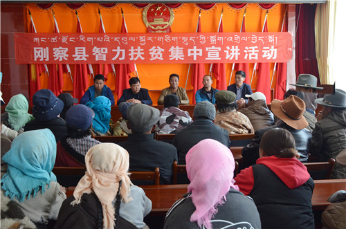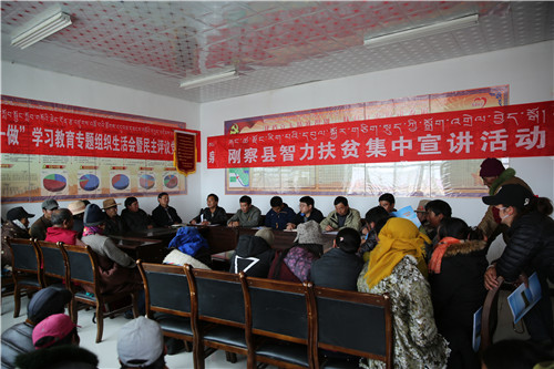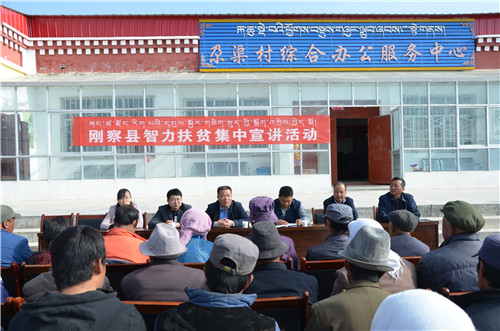 成立了由县委常委、宣传部部长为组长,县委宣传部副部长为副组长,各单位负责人为成员的全县“智力扶贫”宣讲工作领导小组,并抽调农牧科技、民政扶贫、卫生计生、党校、宣传工作中熟悉基层、懂藏汉双语、理论功底扎实的干部和“三老人员”、致富带头人、贫困户脱贫典型、“五星级”文明户作为宣讲组成员,在全县5个乡镇,12个贫困户集中村开展了宣讲工作。