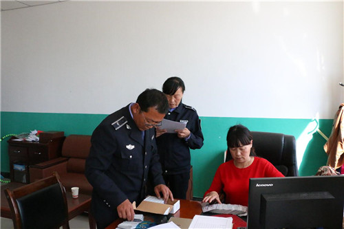 工作人员发放体检卡