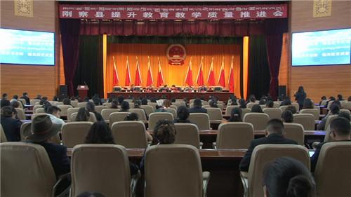 为认真贯彻落实《刚察县义务教育学校教学质量提升行动方案》要求及山东第三方督导评估反馈意见,全面总结近年来我县教育教学工作,交流经验,安排部署下一步工作任务,进一步统一思想,明晰思路,夯实责任,推动我县教育工作实现新的突破。2017年8月29日,刚察县教育局召开提升教育教学质量推进会。县委副书记、教育工委书记陈永祥、县政府副县长哈文秀、县政协副主席色拉嵌巴、县人大农牧环保委员会主任顾切群及各学校(幼儿园)全体教职工、局机关科室主任共300余人参加会议。县政府教育督导室主任尕玛才让主持会议。