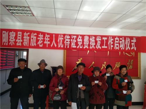 2017年11月2日,新版卡式老年人优待证换发工作启动仪式在县民政局举行,现场10位老人代表领到了首发的新版卡式《青海省老年人优待证》。从本月开始,我县2000余名60岁以上老年人将陆续免费领、换新证,持证将更便捷地享受优待。