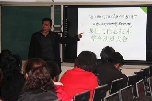 为践行党的十九大报告中提出的"加快教育现代化,办人民满意的教育"精神,落实以教育信息化全面推动教育现代化,进一步提高我校教师运用信息技术的水平,更新教学观念、改进教学方法、提高教学效果,鼓励教师将课程与信息技术进行整合。在洛藏校长的统一部署下,我校于11月4日至11月7日进行了为期四天的教师在实际教学中运用信息技术能力的展示活动。活动分学科进行,由数学、藏语文、汉语文、计算机、英语五个学科的教师依次进行展示。