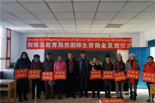 12月14 日刚察县教育局举办了刚察县贫困师生爱心捐助活动。活动由资助中心主任切太主持。教育局副局长李成云和各学校负责人参加了此次贫困师生捐助活动。