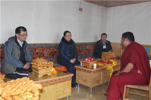 2月8日,省人大常委会副主任、州委书记尼玛卓玛在州委统战部副部长程颐工同志陪同下,赴刚察县哈尔盖镇环仓秀麻寺进行走访慰问,对寺院民管会送去了节日祝福和慰问金3000元。