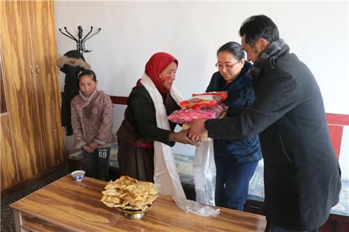 随后,尼玛卓玛书记一行深入哈尔盖镇环仓秀麻村走访慰问了4户建档立卡贫困户,为他们送去慰问金、慰问品,并送上节日的祝福。亲切询问了贫困户的家庭生产生活情况,详细了解贫困户的家庭收入、子女上学就业、致富产业发展、危旧房改造等生产生活问题,分析致贫原因,耐心听取贫困群众反映存在的问题和困难,同时宣传国家扶贫政策,鼓励他们积极寻找增收门路。