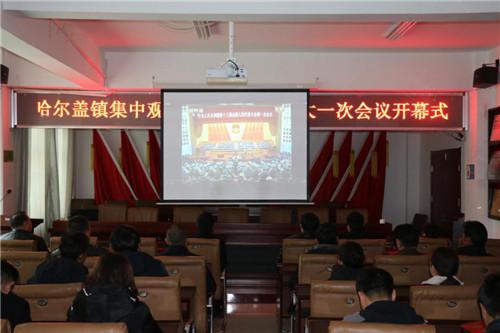 哈尔盖镇组织干部职工集中收看大会开幕盛况