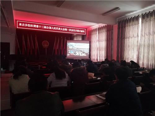 泉吉乡组织干部职工集中收看大会开幕盛况