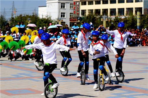 为全面开展人人争做“四爱三有”好少年活动,大力弘扬热爱祖国、无私奉献“两弹一星”精神,进一步深入贯彻全县教育工作会议中提出的“加强基层党建,夯实思政工作,充实发展内涵”的精神,充分展示我县中小学生积极健康向上的精神风貌,刚察县教育系统于6月12日举办了“四爱三有”主题系列活动之“阳光体育精彩绽放”展演活动,来自全县各中小学的近800名学生展示了各学校良好的精神风貌:各学校都能突出学校特色,将体育、美育、智育、德育以及学校特色、师生作品、教育教学成果融为一体进行展演、展示,得到了现场观众的热烈掌声和一致好评。