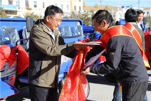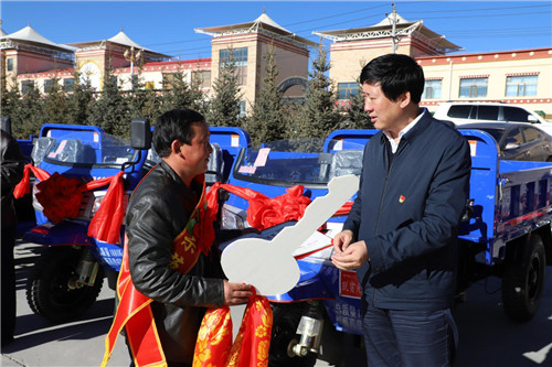 会后,州委副书记、州政府州长阿更登,州委常委、宣传部长王永昌,州政协常务副主席、县委书记拉科,县委副书记、县政府县长晁世海等领导在会场外,为获得“脱贫示范户”荣誉称号的11户脱贫户颁发了农用车钥匙,与会领导勉励脱贫示范户进一步发挥先进典型示范引领作用,进一步激发身边广大贫困群众内生动力,营造“以爱传递爱”脱贫攻坚良好氛围。