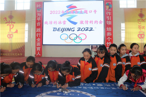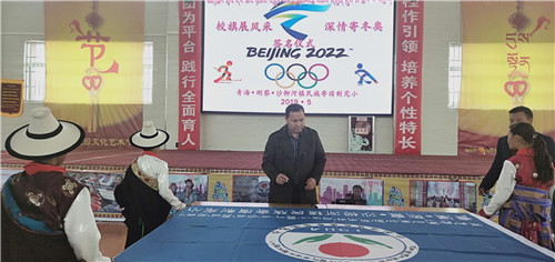 据了解,该校利用课间操组织了这项活动,全校师生积极响应。这面带着全体师生盛情的校旗将会寄到北京冬奥会组委会,以表达刚察草原师生对冰雪文化,对冬奥会的憧憬和祝福,并预祝2022年北京冬奥会圆满成功。