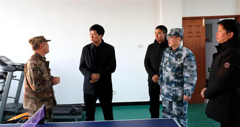 武警中队,拉科亲切看望了正在训练的全体官兵,详细了解了驻队官兵政治学习、军事训练、生活保障等情况,实地查看装备库、给养库、学习室等基础设施使用管理情况。就武警中队官兵宿舍供暖、队内道路改造升级等事宜进行现场办公,协调县财政、发改等相关部门解决相关困难和问题。