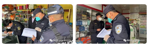 “进出商铺都要扫码,做好人员登记,场所消毒,口罩、消毒用品都备好,一定落实好各项疫情防控措施。”派出所民警带领辅警联合市场监督管理局等职能部门开展疫情防控联合排查整治工作,每个场所都是这样耐心劝导。