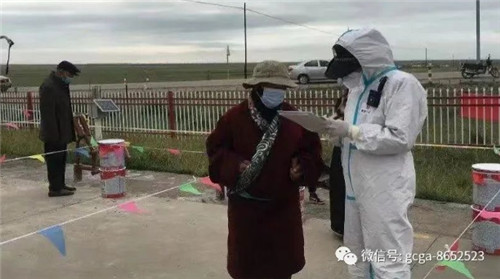沙柳河镇果洛藏贡麻村村警一大早开始在本村秋季草场挨家挨户入户走访排查。“最近家里有没有外来人员,家里的每个人都必须参加核酸检测,近期不能离开县城,不能聚餐,口罩一定要戴好”。每到一户帐篷,他都要详细询问并登记家庭成员核酸检测和疫苗接种情况,提醒群众参加全员核酸检测。