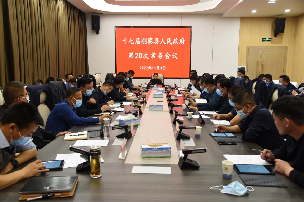 2022年11月3日,县委副书记、县长斗拉主持召开十七届县政府第20次常务会议。会议传达学习了习近平总书记在《求是》杂志上发表的重要文章《坚持人民至上》、中共青海省委《关于进一步弘扬优良作风加快建设现代化新青海的若干措施》、中共海北州委《关于进一步弘扬优良作风全力保障海北经济社会高质量发展的实施方案》以及《中华人民共和国中医药法》、中共中央、国务院《关于促进中医药传承创新发展的意见》等内容,听取全县年度重点工作任务和近期安全生产工作开展情况汇报,研究《刚察县牛肉储备工作实施方案》等事宜。县政府班子各成员参加会议,县人大、纪委监委有关领导应邀列席会议,各乡镇政府、县政府各部门主要负责同志按议题列席会议。
