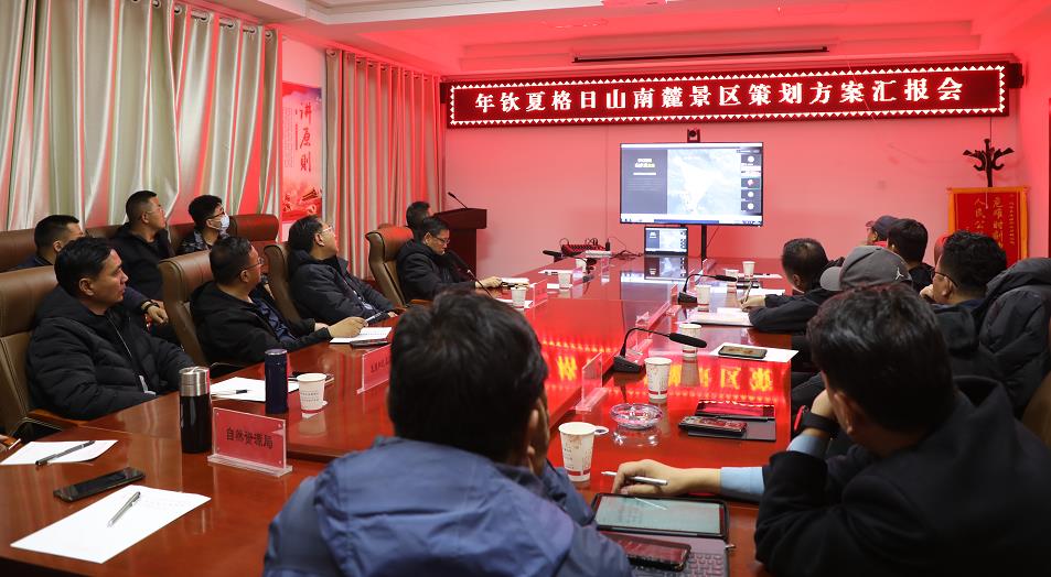 调研组一行先行登上海拔4300米的年钦夏格日山,探索、挖掘自然景观旅游开发点,一路谈思路、画蓝图;观看昆仑神祠壁画和塑像,了解昆仑文化深厚底蕴和环湖民族友好相处的传统历史;察看十五亿绿度姆本康,领悟华夏同族同源,民族团结一家亲的深厚渊源;体验拉克沟独具魅力、奇山异石的旖旎风光。随后,在县住房和城乡建设局召开年钦夏格日山景区策划汇报会,会上听取了东林文化传媒公司关于打造年钦夏格日山的策划设计方案,与会部门主要负责同志就策划方案中的开发思路、景观打造、基础设施建设、游客服务、规划布局等方面提出了具体意见建议。