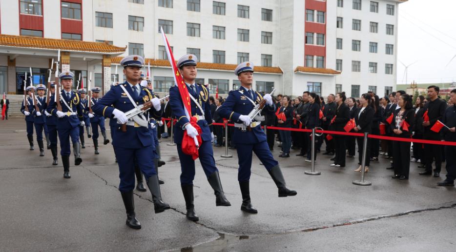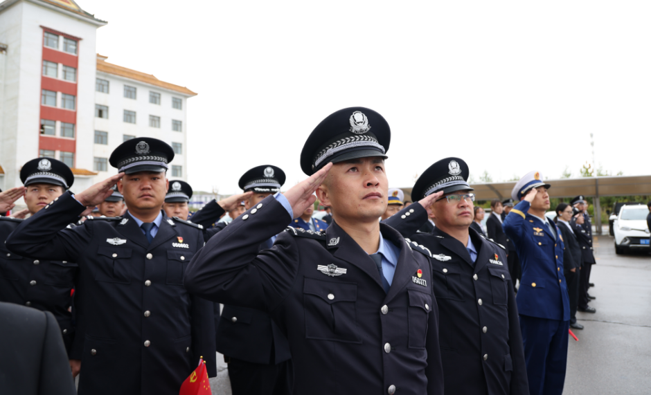 上午9时整,系列庆祝活动在“同升国旗齐唱国歌”主题中拉开帷幕,党政综合大楼前国旗护卫队迈着铿锵有力的步伐,护卫着国旗走向升旗台。伴随着雄壮嘹亮的《义勇军进行曲》,鲜艳的五星红旗冉冉升起,迎风飘扬,参加活动的500余名干部群众集体肃立,齐声高唱中华人民共和国国歌,向五星红旗行注目礼,公安干警、消防官兵向国旗敬礼,共同庆祝中国共产党成立104周年。