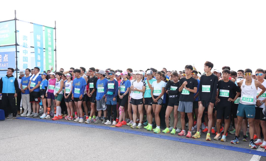 随后,比赛正式进入发枪开赛环节,在起点处,人潮涌动,彩旗飘扬,参赛选手们身着运动服装,有序整队,蓄势待发,伴随着响亮的发枪声响起,全体参赛队员瞬间冲出起跑线,轻快的步伐与碧波浩渺的青海湖、广袤无垠的草原交相辉映,形成了一道活力满满的流动风景线。