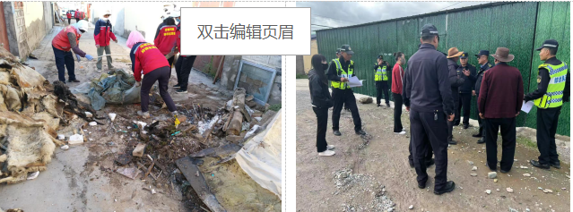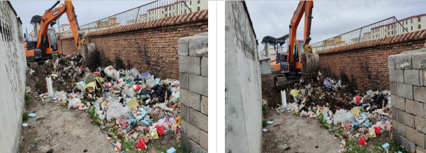 (四)哈尔盖镇为全面提升镇环境卫生整治成效,积极调配挖掘机、清运车等设备,集中清运乡镇旱厕周边垃圾,清理各类垃圾约7吨。同时,安排环卫人员每日对旱厕周边进行巡查,确保整治效果不反弹。