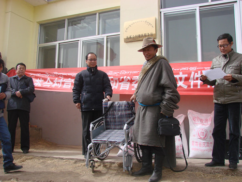 县残联工作人员在深入讲解中央和省委1号文件、疾病防控等基本知识的同时,向扎苏合村8户重度残疾人家庭共发放了16袋面粉和2400元的生活补助;向一位肢残老人发放了轮椅。此前为联点村14户贫困残疾人家庭分配了残疾人扶贫贷款10万元。