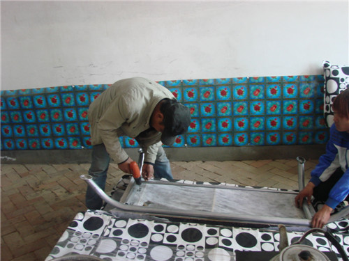 施工人员在残疾人家中改造家庭生活设施