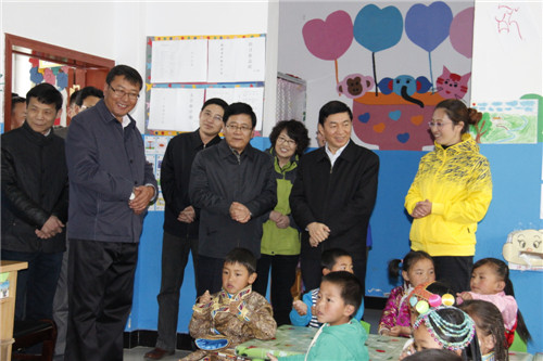 学前教育是骆书记此行调研的重点,骆书记详细了解了县中心示范幼儿园师资结构、课程开设及办学存在的困难等情况,参观了特色绘画班教室,并听取了民族班大班的双语课《认识小动物》,饶有兴趣地与孩子们互动交流。骆书记对“显本土、创特色”的园所文化给予了肯定,并要求幼儿园要在办园目标的指引下,团结一心,育人为本,树立科学管理,铺就特色发展之路,从学前教育三年抓起,以普通教育为主,双语教育为辅,促进师生共同成长,为农牧区学前教育发展奠定坚实的基础。