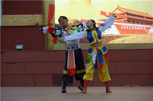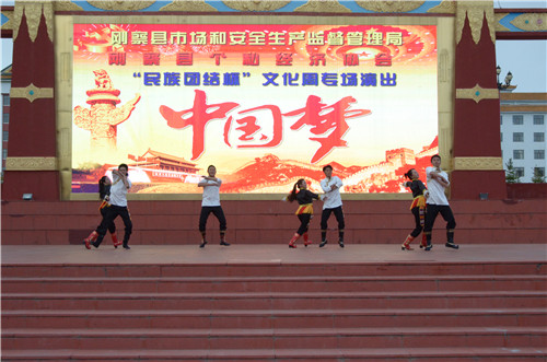 为热烈庆祝中国共产党成立95周年,重温党的光辉历程,讴歌党的丰功伟绩,不断巩固民族团结进步创建工作成果。近日,由刚察县市场和安全生产监督管理局主办的“民族团结杯”文化周专场演出在县职工文化休闲广场隆重举行。节目在开场舞《吉祥祝福》中拉开序幕,嘹亮的歌声,欢快的舞姿,象征着刚察各族儿女在党的领导下,建设新藏城,在国家的惠民政策指引下,过好社会主义新生活的喜悦心情。紧接着,精心编排的舞蹈《我心飞翔》、《情歌》、马头琴演奏《万马奔腾》、长笛独奏《美丽的草原我的家》和独唱《草原情》等10余个文艺节目不断上演。精彩纷呈的节目呈现出县市场和安全生产监督管理局干部职工积极向上、团结奋进的团队意志和做好市场安全生产监督管理工作的决心,讴歌了高原红盾卫士在维护全县经济社会健康发展历程中取得的成绩,展现了全县非公经济组织良好的精神面貌。