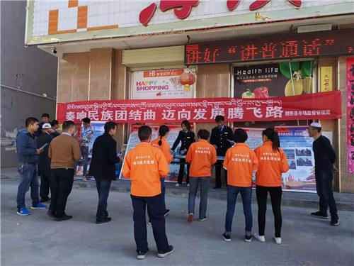 活动以“奏响民族团结曲、迈向发展腾飞路”为主题,以“同谱民族团结曲、共唱和谐刚察歌”为主线,以创建让群众满意的消费市场为抓手,通过设置宣传咨询台、悬挂横幅、发放宣传手册、宣讲民族理论、解读民族政策等多种形式展开,宣传活动吸引了众多群众参与互动。