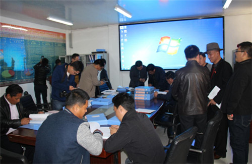 考察交流组查看哈尔盖镇档案资料