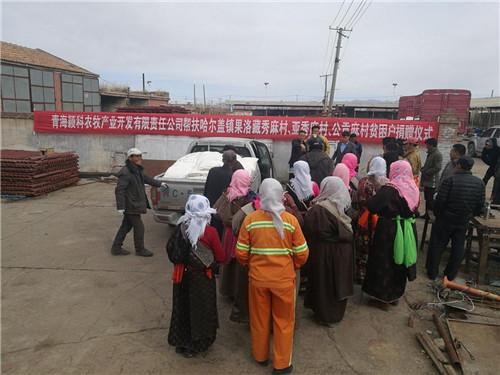 近期,在刚察县委、县政府的正确领导下,在各级部门的引导下,青海颖科农牧产业开发有限责任公司以扶贫产业化龙头企业的宗旨为引领,为我县哈尔盖镇贫困户进行帮扶,在哈尔盖镇举行了脱贫攻坚捐赠仪式。