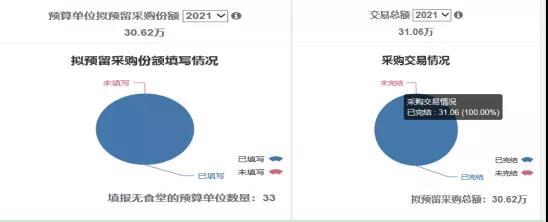 县财政局全面贯彻落实党中央、国务院关于调整优化政府采购政策,继续通过预留份额采购脱贫地区农副产品支持乡村产业振兴的工作部署,根据国家、省州相关文件精神,以“政府引导、社会参与、市场运作、互利共赢”为原则,以促进贫困地区农副产品销售为目标,充分运用政府采购政策鼓励动员各预算单位通过优先采购、预留采购份额方式,采购贫困地区农副产品,持续助力乡村产业振兴。为确保平台采购工作顺利开展,县财政局以促进乡村产业振兴为出发点,增强执行政策的自觉性和紧迫性。充分做好各预算单位培训指导工作,利用各种培训、会议等反复强调政府采购政策支持乡村产业振兴的重要意义,加强政府采购支持脱贫攻坚政策与成效宣传鼓励,引导各预算单位加大采购贫困地区农副产品力度,督促各级预算单位按期完成2021年度贫困地区农副产品网络销售平台(简称“832”平台)采购任务。我县2021年度拟预留采购份额为30.62万元,截至11月16日,我县提前超额完成了全年贫困地区农副产品采购任务,采购交易总额为31.06万元,完成率为101%。县财政局将继续做好政府采购和乡村振兴战略的互促互融,将政府采购支持乡村振兴与发展各项政策落实到位。