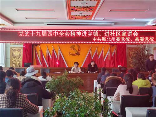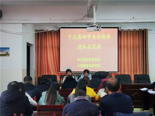 12月23日至24日,为深入学习宣传贯彻党的十九届四中全会精神,州委党校和县委党校共7位教师深入我县机关、乡镇、社区、村开展宣讲,确保十九届四中全会精神深入基层、深入群众、深入人心、从而推动全会精神落地生根。