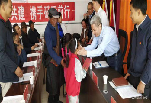 伊克乌兰乡党委书记林现波、压公麻村党支部书记任桑加分别就近年来该乡受援情况和支部建设情况进行了汇报,并详细介绍了压公麻村发展状况及集团结对帮扶项目的进展情况,研究通过了压公麻村党员活动室建设方案。座谈会后,帮扶组一行赴压公麻村原支部书记龙布同志家走访慰问遗孀,并表达了对优秀老党员龙布同志的敬意和追思。同时,亲切慰问了四户家庭的孩子,并为每人发了1000元慰问金。