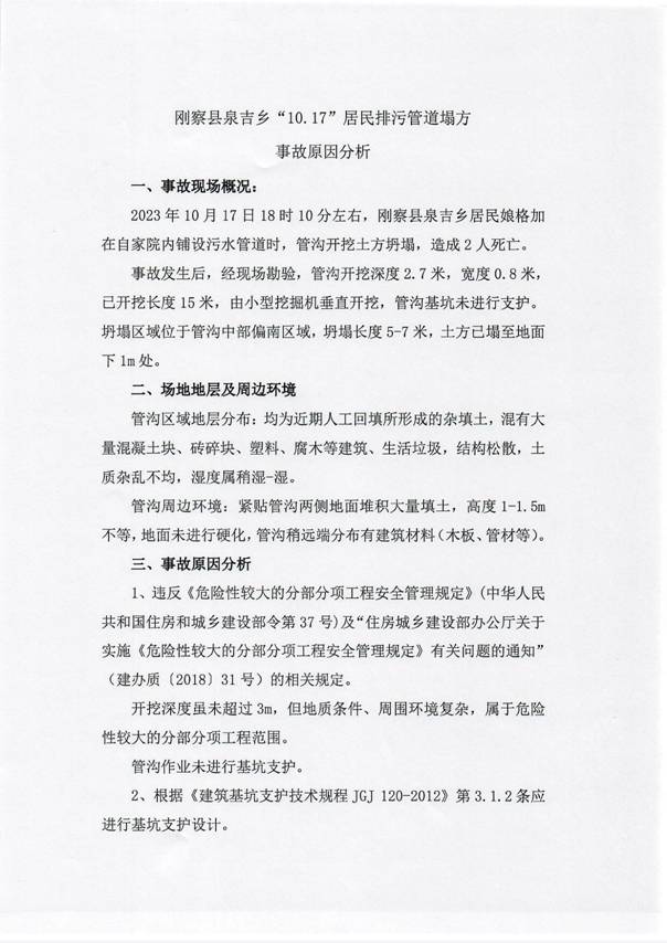 附:刚察县泉吉乡“10.17”居民排污管沟塌方一般生产安全事故调查报告