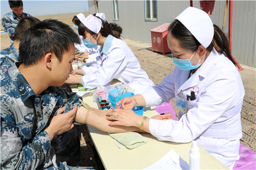 在护士节来临之际,县医院组织业务骨干赴驻县某部队空军雷达站,展开巡回医疗服务,将健康送到军营,为默默在高原奉献的空军官兵进行免费健康体检。巡回医疗车开进军营,受到了部队官兵们的热烈欢迎。尤其是医疗队的护士们,一到营地便开展工作,协助医生体检,还对官兵们遇到的常见病健康宣教,在健康方面为官兵们答疑解惑,受到官兵们一致赞扬。