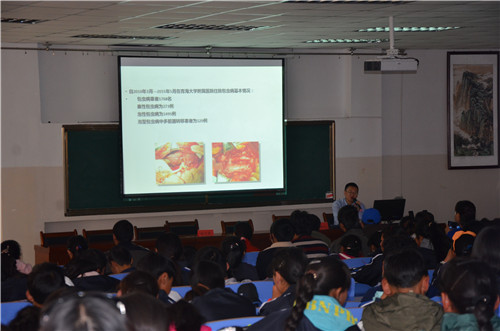 期间,王海久主任主要讲解了包虫病是棘球蚴病,属于自然疫源性疾病,是常见的人、畜共患寄生虫病,是严重危害人民身体健康和生命安全、影响社会经济发展的重大传染病之一。他通过本省实例教育引导广大干部职工和师生不玩狗、不喝生水、不吃生肉、饭前洗手、餐具洁净,加强家犬管理、防止犬粪污染草原、预防羊群染病等相关预防包虫病的措施,从而有效预防包虫病传染。