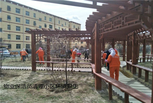 物业保洁员清理小区环境卫生