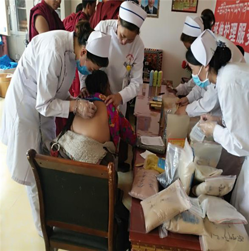 此次活动免费发放药品25种,宣传60册,宣传品洗手液、刷牙杯等,把藏医特色护理服务延伸到了孤寡老人的身边,为老人们送去了关爱和健康。