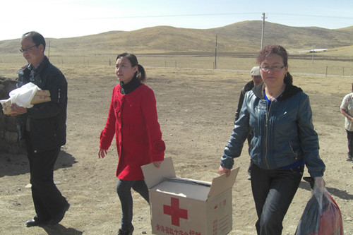 县妇联、残联、红十字会慰问组到哈尔盖镇慰问困难群众