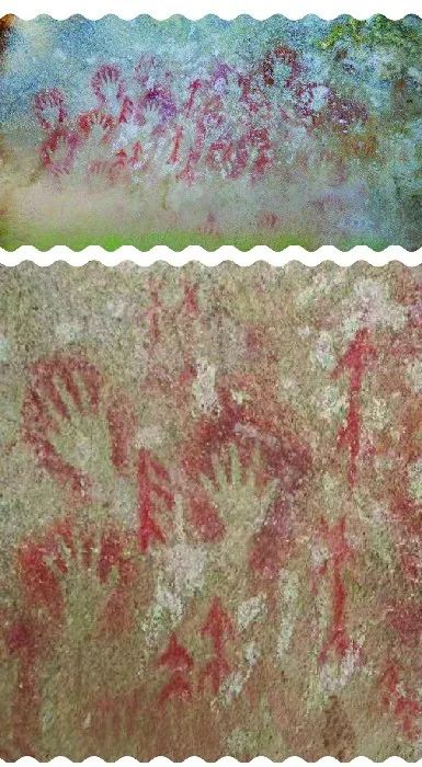 ཆུ་འདལ་མའི་བྲག་ལྡེབས་ཀྱི་ཡ་ཐོག་ལག་རྗེས་ཚོན་རིས་མ།
