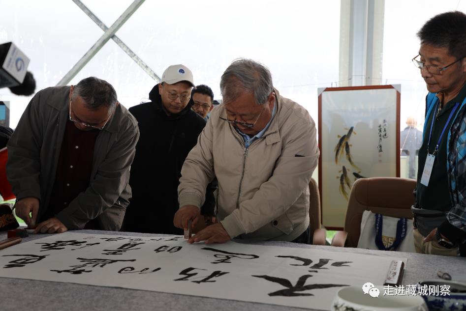 མགོ་རྩོམ་མཛད་སྒོའི་སྟེང་སྐུ་མགྲོན་རྣམས་ཀྱིས་རྐང་ཚ་རྫོང་རིག་གནས་ཁང་རྩྭ་ཐང་སྒྱུ་རྩལ་ཚོགས་པའི་རིག་རྩལ་འཁྲབ་སྟོན་ལ་རོལ་མྱོང་བྱས།